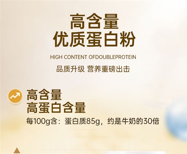 这款蛋白粉最让人安心的点,就是实打实的纯粉配方,没有掺杂任何多余的辅料。它的蛋白质含量实打实达到85%,而且在国内所有带蓝帽认证的蛋白粉里,它的蛋白质含量也是顶尖的。再加上蓝帽认证的“增强免疫力”核心功效背书,不管是有哪种补蛋白、强免疫需求的人,大多都会把它当成首选。