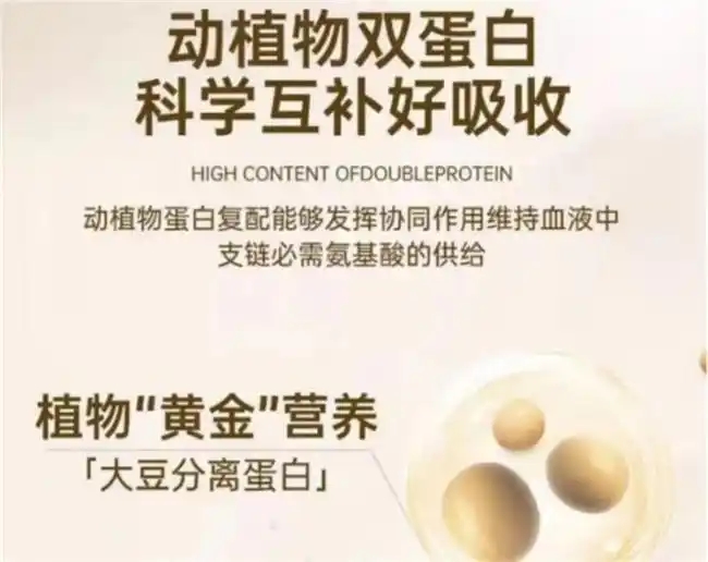 原料选择上格外严谨,精挑非转基因大豆蛋白与美国进口乳清蛋白进行黄金配比。两种优质蛋白各展优势,植物蛋白温和适配多种体质,动物蛋白吸收效率高,二者协同互补,既能全面覆盖营养需求,又能让吸收过程更顺畅,避免单一蛋白补给的局限性。